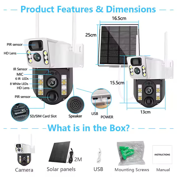 When you purchase the 4G Solar WiFi Security Camera with SIM and Battery Backup, you will receive: