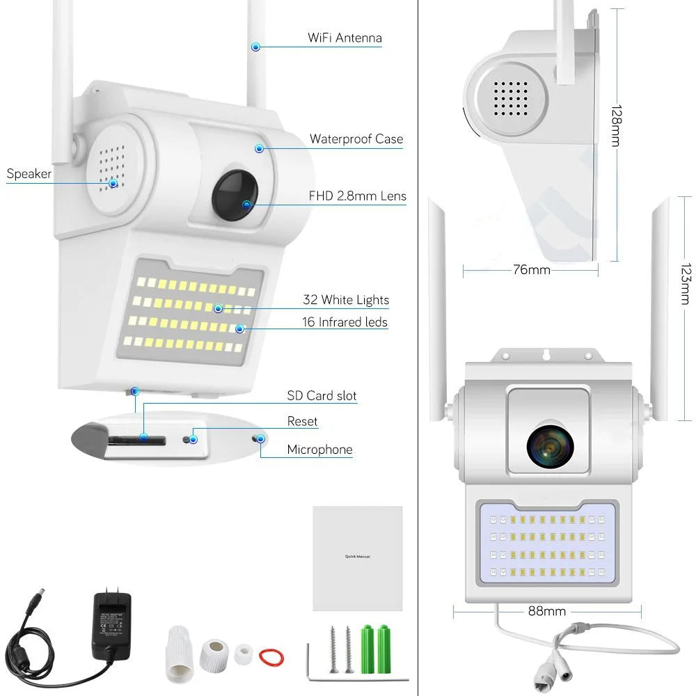 The A11 WiFi Wall Lamp Security Camera is a smart two-in-one device, combining elegant outdoor lighting with powerful wireless surveillance. It’s perfect for homeowners who want discreet yet effective security, all while enhancing their outdoor space. With HD 1080P video, waterproof durability, and smart motion detection, the A11 keeps your home safe — day and night.