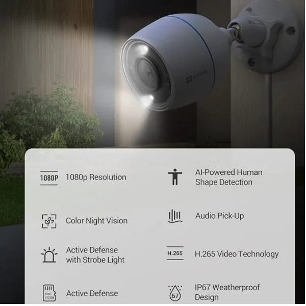 EZVIZ H3c 1080p 2MP Color 2.8mm Outdoor Bullet Wi-Fi Smart Home Camera