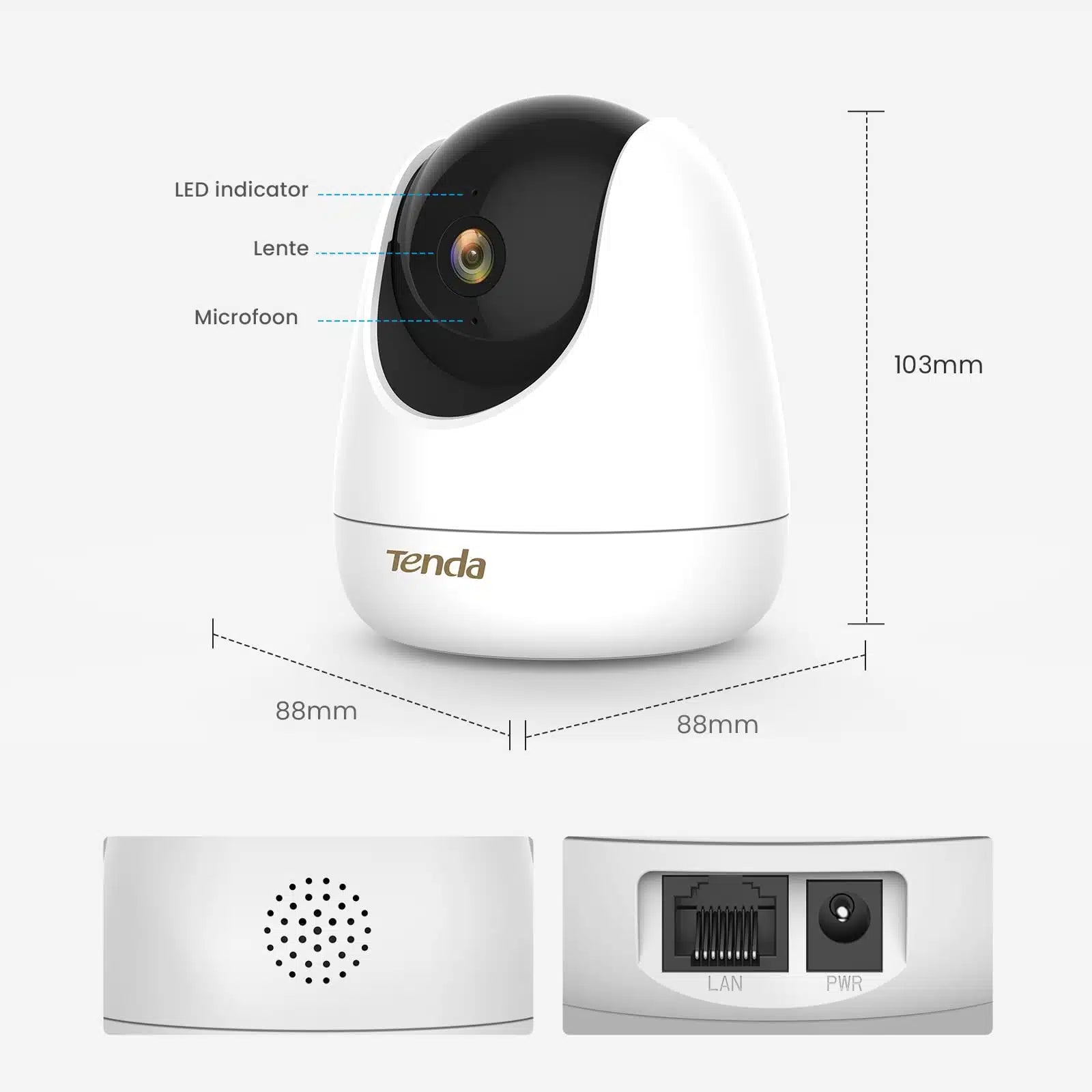Tenda cp-7 is Crystal-clear 4MP resolution for sharp and detailed video.Pan/Tilt control lets you cover every angle remotely.AI motion detection minimizes false alerts.Two-way audio allows real-time communication.Easy setup with secure cloud and local storage options.